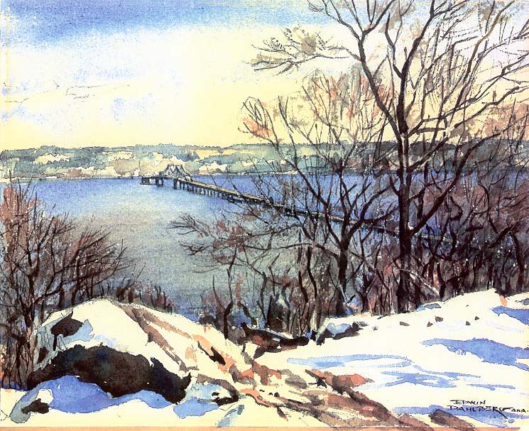 Watercolor painting of the Tappan Zee bridge by Edwin Dahlberg, Karen's Dad.